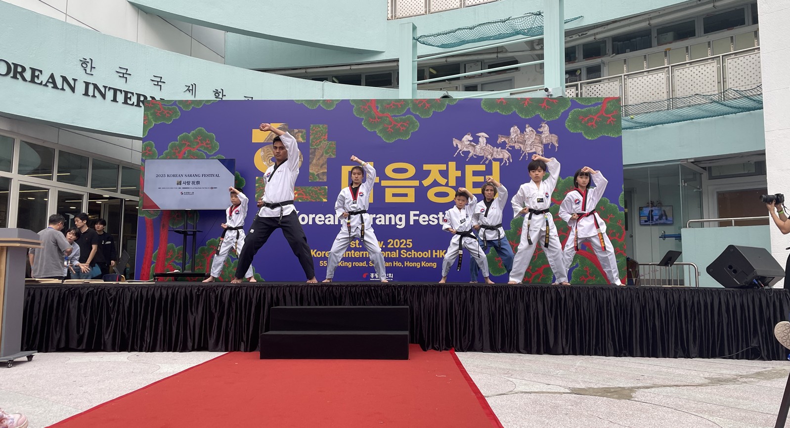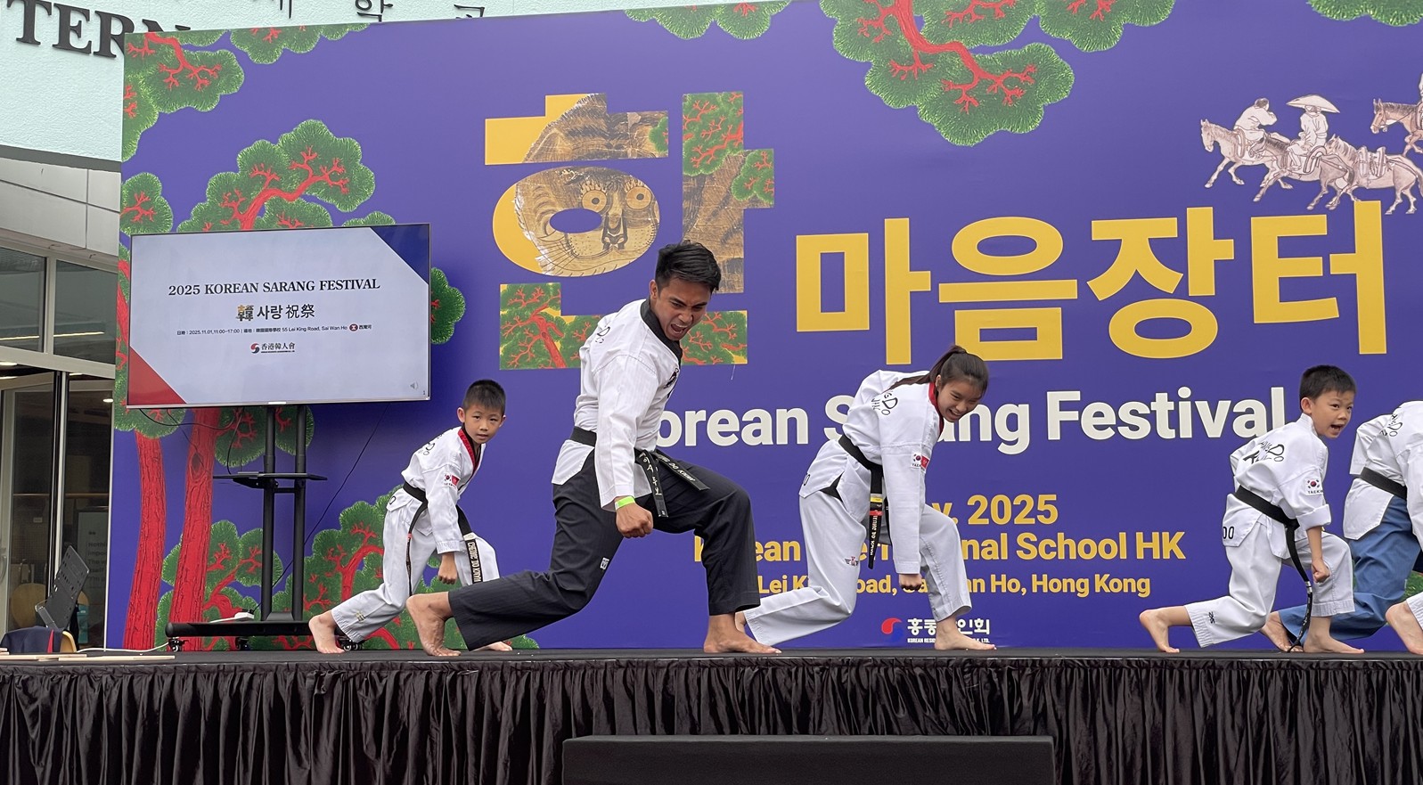 Cheung Do Kwan Taekwondo’s Demonstration Team delivered an impressive performance at the 2025 Korean Sarang Festival held on November 1, 2025, at the Korean International School in Hong Kong. The festival, organized by the Korean Residents Association, featured a vibrant celebration of Korean culture, and Cheung Do Kwan’s team showcased the art of Taekwondo with precision, discipline, and strong spirit.